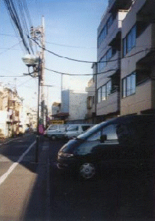 横から亀有名画座に臨む。道路拡張の為に、この突き出た部分(映写室とロビー)が邪魔なんだと(怒)。 |